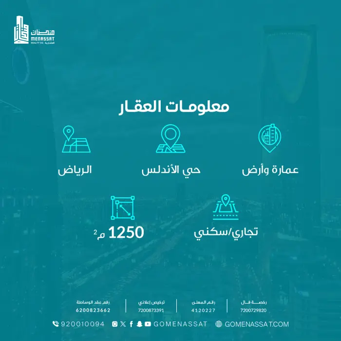 توجد عمارة قديمة حالياً (معارض + مكاتب) قابلة للتطوير