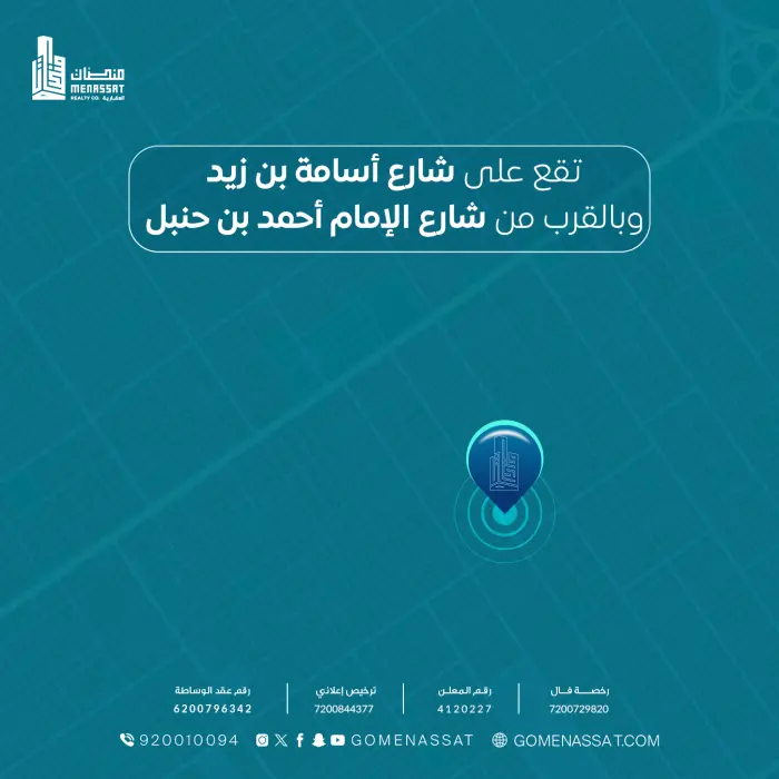 قريبة من تقاطع شارع أحمد بن حنبل مع شارع أسامة بن زيد قرابة 250 م