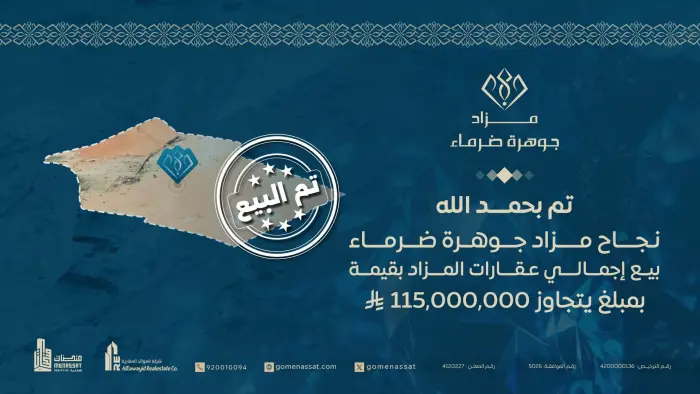 نجاح مزاد «جوهرة ضرماء» وترسية البيع بقيمة 115,000,000 ريال
