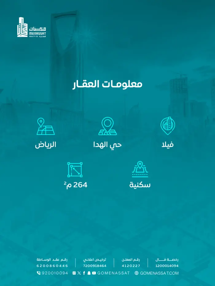 - المساحة: 264م م².